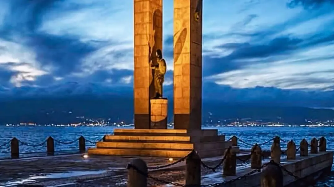 All’Arena dello Stretto di Reggio, dopo il temporale, Athena si specchia nella luce dorata dell’ultimo sole, sospesa tra cielo e mare