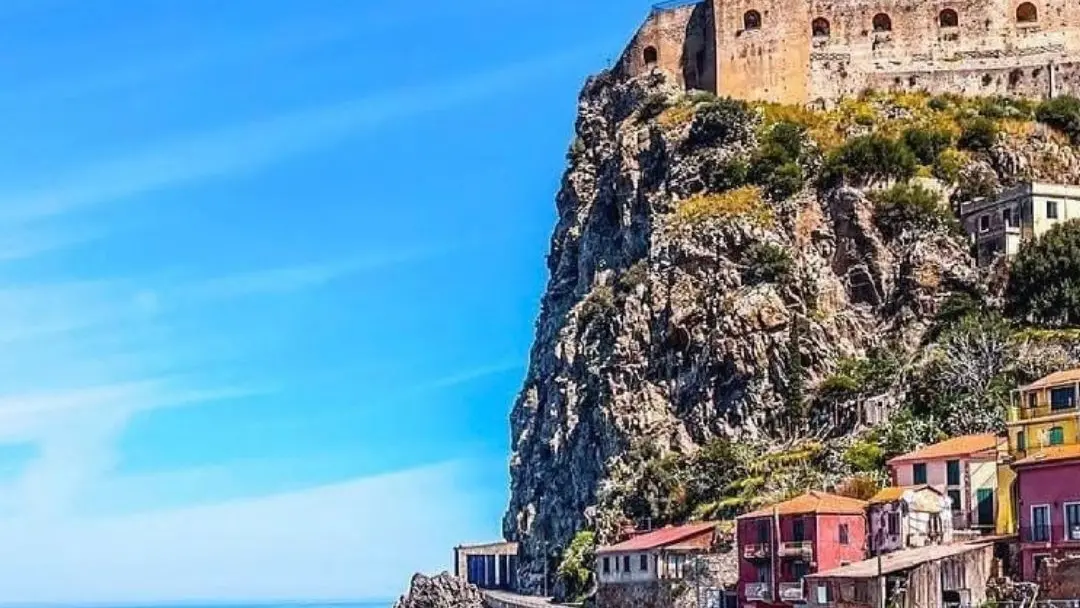 Un angolo di Scilla dove il tempo sembra fermarsi: una barchetta sulla riva, il castello che veglia dall’alto e l’azzurro che avvolge ogni cosa in una carezza silenziosa