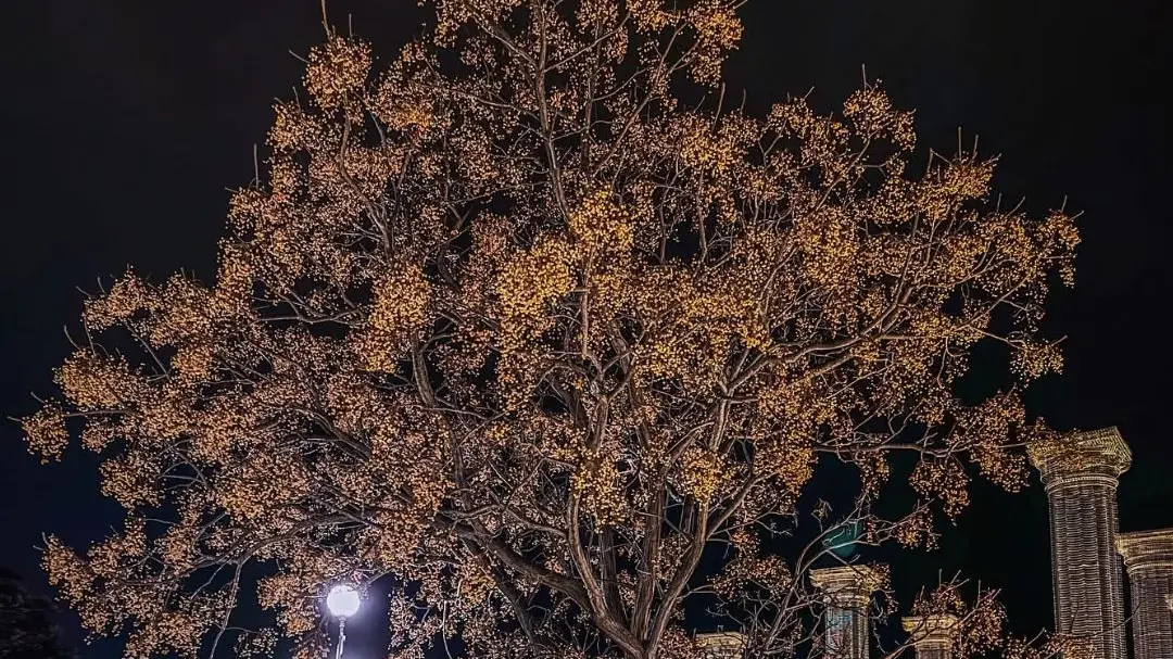 Al centro della scena, un albero solitario interrompe con grazia la geometria della pietra. Le sue fronde sembrano raccogliere la brezza salmastra e restituirla alla sera, come un gesto gentile. Attorno, il lungomare scorre tranquillo, quasi sospeso tra il giorno appena finito e la notte che lentamente si avvicina.