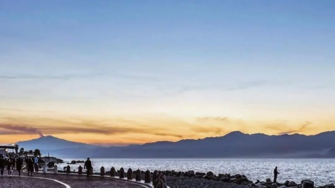 C’è un momento, sul lungomare, in cui il giorno si arrende alla sera con una dolcezza che sfiora l’eterno. Il cielo si tinge di sfumature calde, mentre l’Etna, silenzioso e maestoso, lascia salire il suo respiro nel vento, come un segreto antico che non smette di raccontarsi.