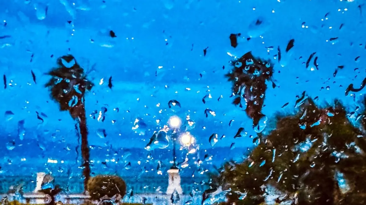 Fuori piove piano, e ogni goccia sul vetro sembra portare con sé un pensiero. Il lungomare, intravisto appena tra le trasparenze sfocate dell’acqua, appare come un ricordo lontano, dolce e sfuggente. Le palme, le luci della città, il mare che si intuisce oltre… tutto è ovattato, come se il tempo avesse rallentato il passo per lasciar spazio ai sentimenti.