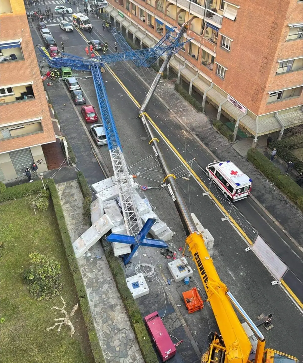 «La gru era già montata, non si riesce a capire che cosa sia accaduto», ha dichiarato un vigile del fuoco. Il crollo avrebbe interessato anche l’autogru utilizzata per montare la gru più grande. «Ieri qui sotto c’era la coda all’ufficio postale e pochi metri più in là c’è la fermata dell’autobus. Poteva essere una strage», ha invece raccontato un operaio del cantiere di via Genova.