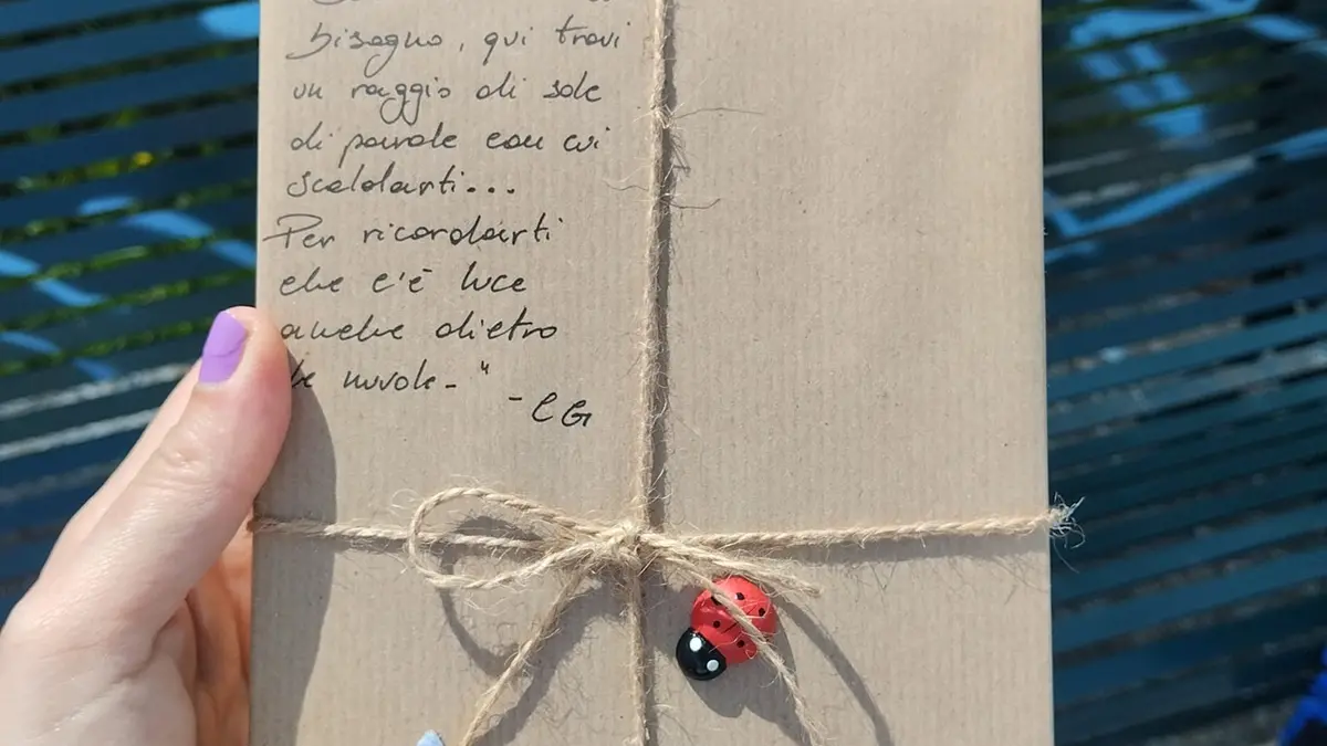 «Solo se ne hai bisogno, qui trovi un raggio di sole di parole con cui scaldarti… Per ricordarti che c’è luce anche dietro le nuvole», il messaggio scritto, che fa intuire che il destinatario o la destinataria sia qualcuno con cui C.G. è legato sentimentalmente, forse un amore o un’amicizia molto importante. Da quelle parole, che stanno emozionando il web, si intuisce che quello confezionato con dovizia possa essere un libro. A trovarlo è stata una ragazza che lo ha subito segnalato al gruppo social nato tre anni fa con lo scopo di aiutare le persone a ritrovare ciò che perdono “Oggetti rinvenuti/smarriti Reggio Calabria”. Il gruppo ha subito postato la foto del pacchetto e pubblicato l’annuncio, con la speranza di ritrovare al più presto chi l’ha smarrito, affinché possa anche giungere al destinatario.