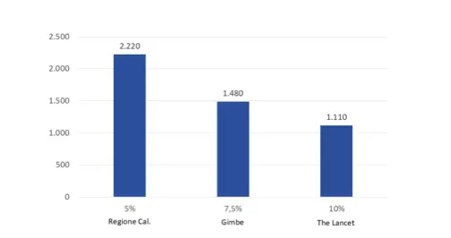 Se ci limitiamo ad una proporzione lineare rispetto alla popolazione del fabbisogno indicato dallo studio Remuzzi (4000 p.l.), per la Calabria vorrebbe dire allestire 132 p.l. intensivi nuovi. Tutto ciò non calcolando il delta di sottodotazione della Regione. D’altra parte la presidente Santelli ha già avuto modo di dichiarare (in data 9 marzo 2020) come i posti di terapia intensiva regionale siano già occupati dai pazienti non COVID-19, che come è naturale non possono essere dimessi.
