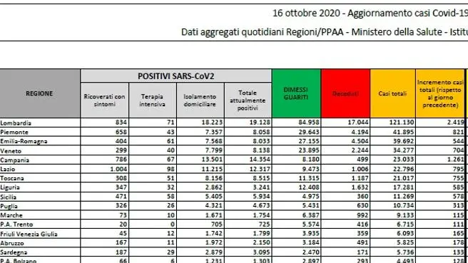 La curva epidemica continua a salire in modo allarmante: è stata superata la soglia dei 10 mila positivi in 24 ore. I casi di oggi rappresentano un nuovo picco di contagi: mai così tanti nel nostro Paese in un giorno. Si tratta del terzo picco consecutivo da quando il 14 ottobre sono stati registrati 7.332 nuovi casi superando il picco massimo del 21 marzo nella fase più critica dell’epidemia,