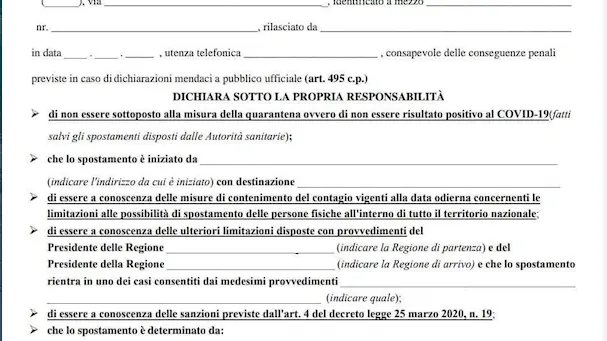 Il nuovo modello di autocertificazione può essere scaricato dal sito del Viminale. Sarà comunque possibile usare ancora quello vecchio, barrando le parti non più attuali