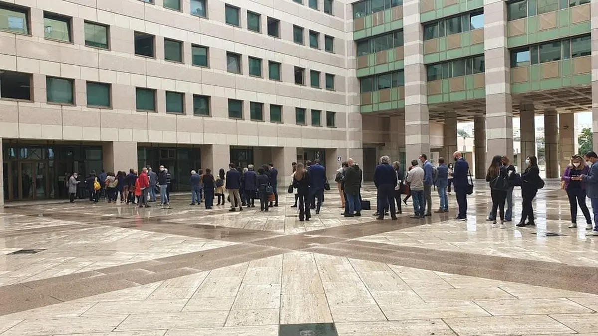 Lunga fila stamane per entrare al Cedir di Reggio Calabria. La coda per gli avvocati e per il personale che doveva accedere si è formata perché è stato necessario sanificare gli ambienti.
