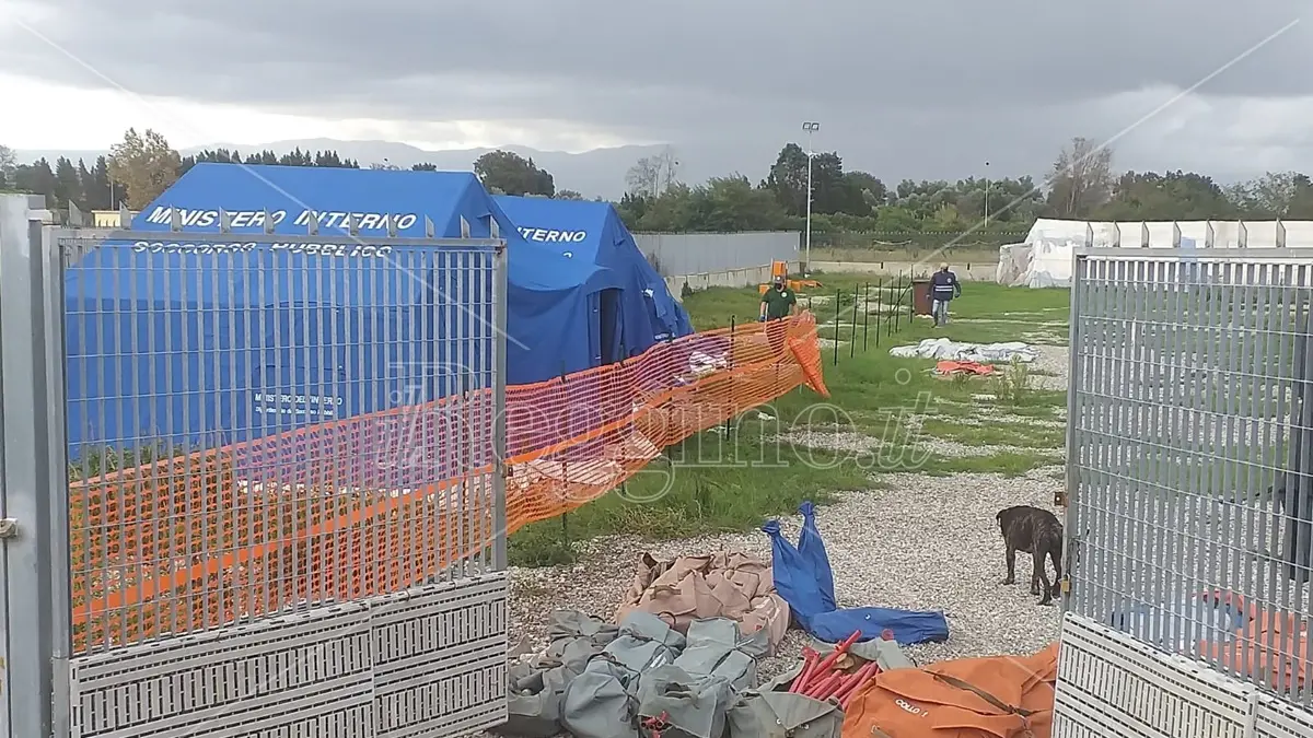 Si stanno montando 4 tende, in una porzione transennata della struttura, mentre è stato chiuso il front office per evitare assembramenti all’ingresso e per gli accessi verrà utilizzato il grande cancello finora chiuso.