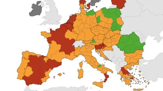 E’ stata aggiornata la mappa Ue realizzata dall’Ecdc (il Centro europeo per la prevenzione e il controllo delle malattie, che classifica le zone a maggiore o minore pericolo di diffusione del Coronavirus) sul rischio Covid in Europa: stando agli ultimi dati, quasi tutte le regioni sono colorate di arancione, ad eccezione della Calabria, che resta rossa. Bene anche il resto d’Europa.