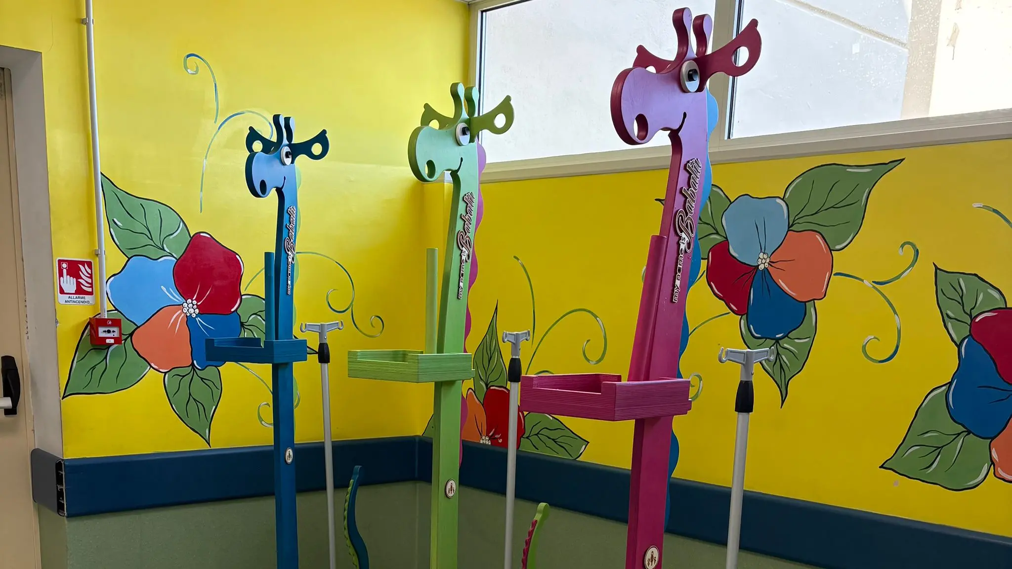 Aste porta flebo a forma di simpatiche giraffe: la donazione de «La Spina Santa srl» alla U.O.C. di Pediatria.