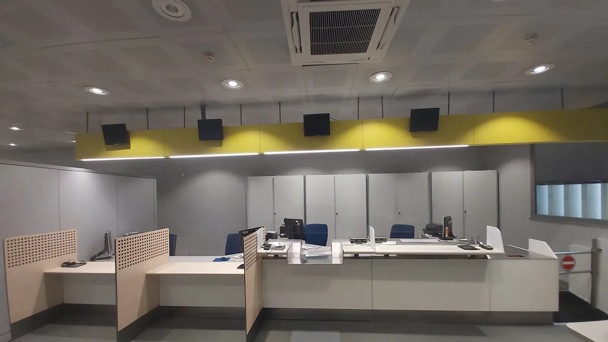 Nell’ambito degli interventi, si è proceduto a una completa riorganizzazione degli spazi finalizzata a ottimizzare la fruizione dell’ufficio con particolare attenzione al miglioramento del confort ambientale e alla facilitazione dell’accesso ai servizi. In quest’ottica, tra le altre opere, si inseriscono la nuova configurazione della linea di sportelleria, con altezze ribassate per agevolare tutti i segmenti di clientela