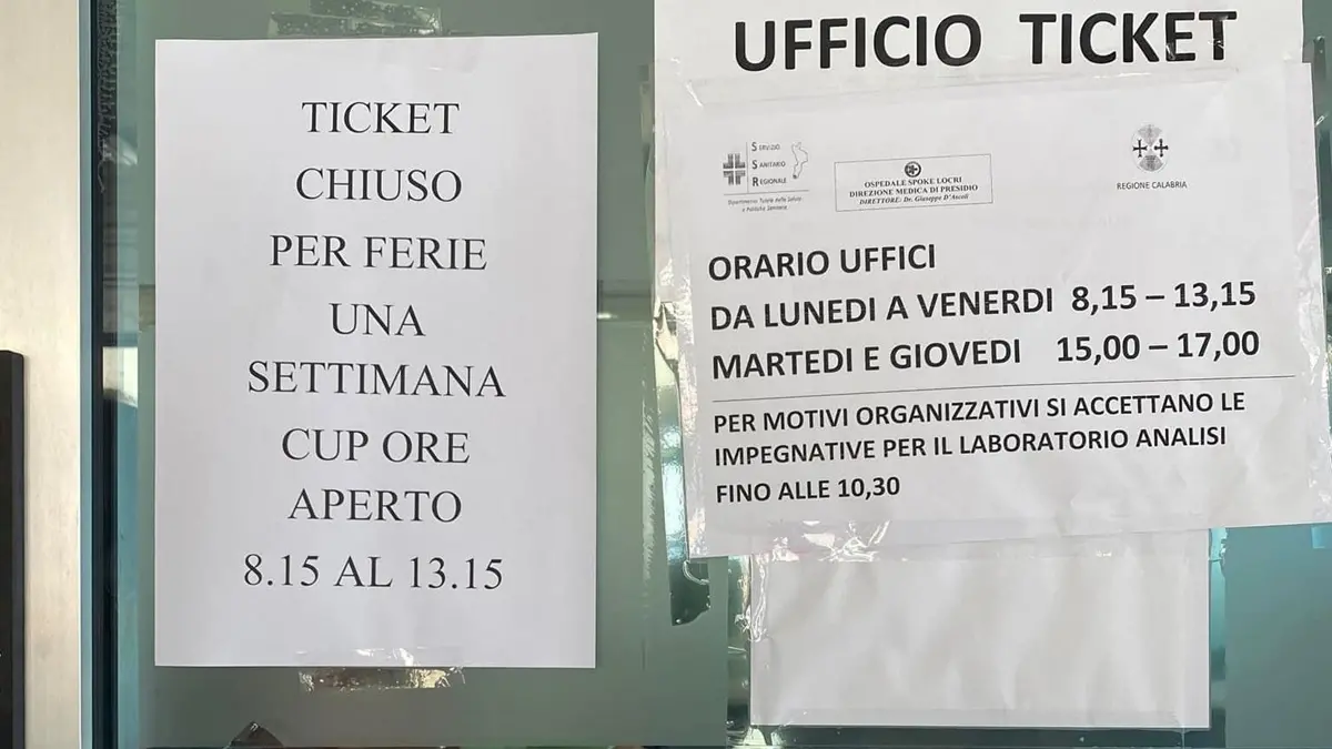 Brutta sorpresa questa mattina per chi si è presentato davanti allo sportello ticket dell’ospedale di Locri, fuori dal quale è comparso un avviso di chiusura di una settimana per ferie. La maggior parte dell’utenza, ignara della novità comunicata senza alcun preavviso e in maniera tutt’altro che chiara, è rimasta spiazzata. Chi era in fila dalle prime ore del mattino per validare con il pagamento del ticket alcune ricette prescritte o visite prenotate ha infatti appreso della chiusura solo una volta giunti davanti allo sportello all’ingresso del nosocomio di contrada Verga.