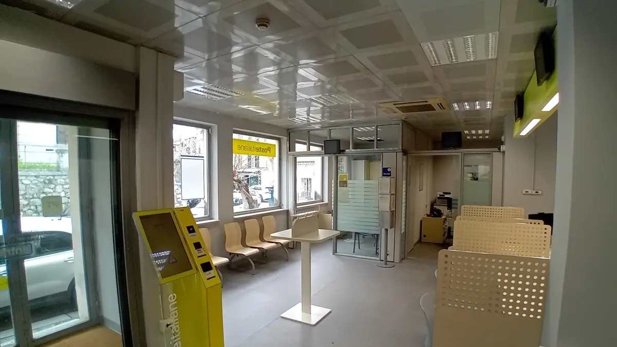 Nell’ambito degli interventi, si è proceduto a una completa riorganizzazione degli spazi finalizzata a ottimizzare la fruizione dell’ufficio con particolare attenzione al miglioramento del confort ambientale e alla facilitazione dell’accesso ai servizi. In quest’ottica, tra le altre opere, si inseriscono la nuova configurazione della linea di sportelleria, con altezze ribassate per agevolare tutti i segmenti di clientela e postazione di lavoro ergonomica per favorire una corretta postura.
