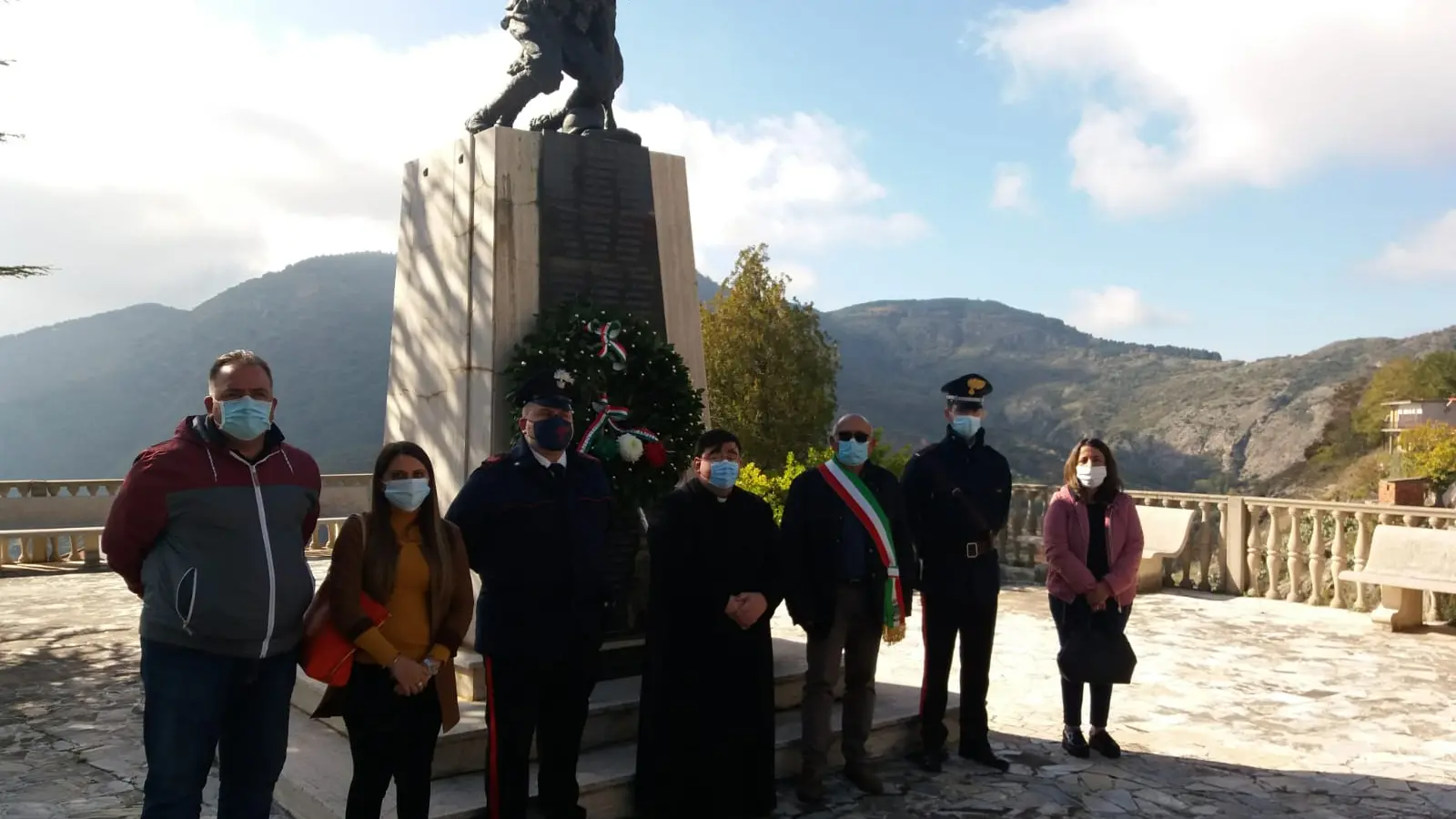 Durante la celebrazione è stata deposta una corona di alloro ai piedi del monumento ai Caduti. «Il Sindaco – si legge in una nota – ha inteso sottolineare la gravità del momento che stiamo vivendo, certamente il più difficile del dopoguerra. Ha voluto ricordare che poco più di un secolo fa la nostra Nazione usciva vittoriosa dalla Prima Guerra Mondiale dopo tre anni di un conflitto disumano consumato nelle trincee del Trentino, del Veneto, del Friuli con la fame, il freddo, le scarsissime condizioni igieniche e un nemico subdolo quale la spagnola, l’influenza che colpì oltre 200 milioni di persone in tutto il mondo causando circa 50 milioni di morti».