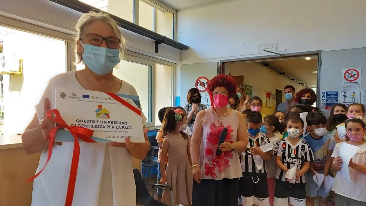 «Grazie della vostra presenza e perché gioite con noi a questo particolare evento che vede l’inaugurazione della Scuola Primaria “Cosimo Scarfò” dell’Istituto Comprensivo “De Amicis-Maresca” di Locri quale, Presidio di Gentilezza per la Pace» – così hanno esordito il loro saluto la dirigente scolastica Carla Galletta e la docente di scuola primaria facente parte della rete nazionale insegnanti per la gentilezza, Maria Varacalli, durante la giornata di festa che si è svolta l’ 8 giugno partecipando alle Giornate Nazionali dei Presidi di Gentilezza per la Pace dal 2 al 22 Giugno 2022, ed inaugurando il presidio di Gentilezza per la Pace.