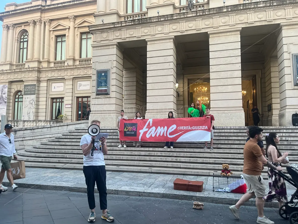 «La mia libertà è già una rivoluzione», grida Lea Garofalo, testimone di giustizia di Petilia Policastro nel Crotonese uccisa a Milano nel 2009 e vittima di ndrangheta. Lei rivive ai piedi della scalinata del teatro Cilea di Reggio Calabria in occasione della performance di Katia Colica e Thecla De Marco con la collaborazione di Antonio Aprile. L’occasione è quella della tappa in riva allo Stretto della campagna nazionale “Fame di verità e giustizia”, lanciata da Libera per i suoi trent’anni.