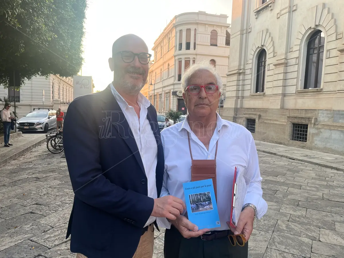 Dopo la presentazione nella chiesa di San Giuseppe al Corso di Reggio Calabria, guidata da padre Pasqualino Catanese, vicario dell’arcidiocesi Reggio-Bova e anche lui poeta, di “Cento e uno Poeti per la pace”, la raccolta di poesie proposte nelle prime due edizioni del concorso nazionale “Poesia per la pace” svoltosi a Santo Stefano in Aspromonte, i poeti hanno raggiunto in corteo piazza Italia. Qui hanno consegnato una copia della raccolta ad Antonio Ruvolo, capo di Gabinetto del Comune.