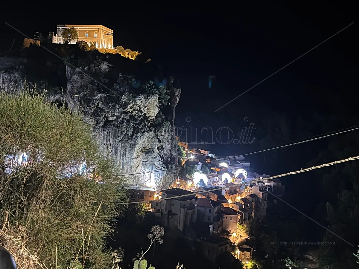 A 300 metri sul livello del mare, costeggiando un mastodontico costone che incornicia il borgo, che ispirò anche il tratto geniale dell’incisore olandese Maurits Cornelis Escher, si raggiunge la piazza antistante il centro culturale San Sebastiano. Accanto alla chiesa che accoglie la statua di Sant’Anna, patrona di Palizzi, e della Madonna del Carmelo, alla quale il paese è devota, allestito il palco per la consueta festa di Sant’Anna che, anche in occasione di questo 26 luglio, ha attirato nel borgo affezionati e turisti. Il concerto ha concluso i festeggiamenti culminati nelle processioni della patrona Sant’Anna e della Madonna del Carmelo.