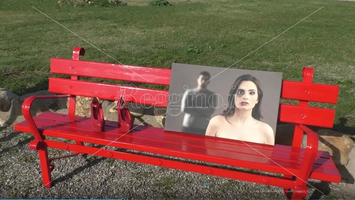 Oggi questo spazio, fortemente simbolico, si arricchisce anche di questa panchina. Al momento della sua scopertura, su di essa un paio di scarpe rosse e ai lati le bellissime foto di Antonio Sollazzo. L’intento è stato quello di creare un contrasto tra la bellezza delle donne e il dramma di coloro che sono vittime di abusi e violenza.