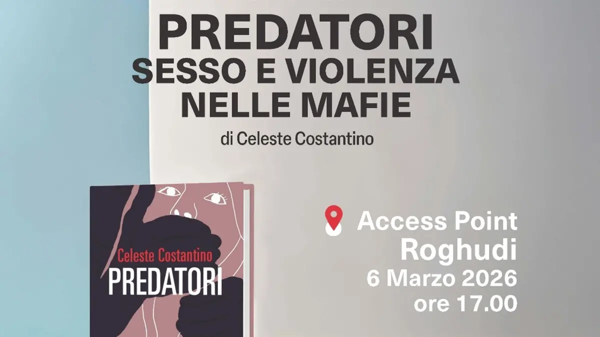 Un momento pubblico di approfondimento sui rapporti tra violenza di genere, cultura patriarcale e potere mafioso. È questo il cuore dell'incontro in programma venerdì 6 marzo 2026 alle ore 17.00 presso l'Access Point di Roghudi, dedicato alla presentazione del libro "Predatori. Sesso e violenza nelle mafie" di Celeste Costantino.