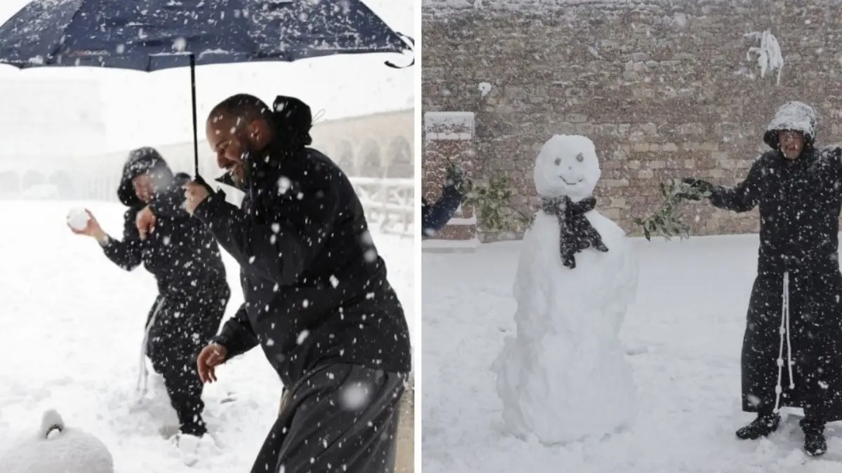 La neve, si sa, fa tornare tutti bambini. L’incanto dei fiocchi che scendono piano e imbiancano tutto ha travolto anche i frati della Basilica di San Francesco di Assisi, che questa mattina hanno dato vita ad un simpatico siparietto ripreso e postato sulla loro pagina facebook ufficiale.