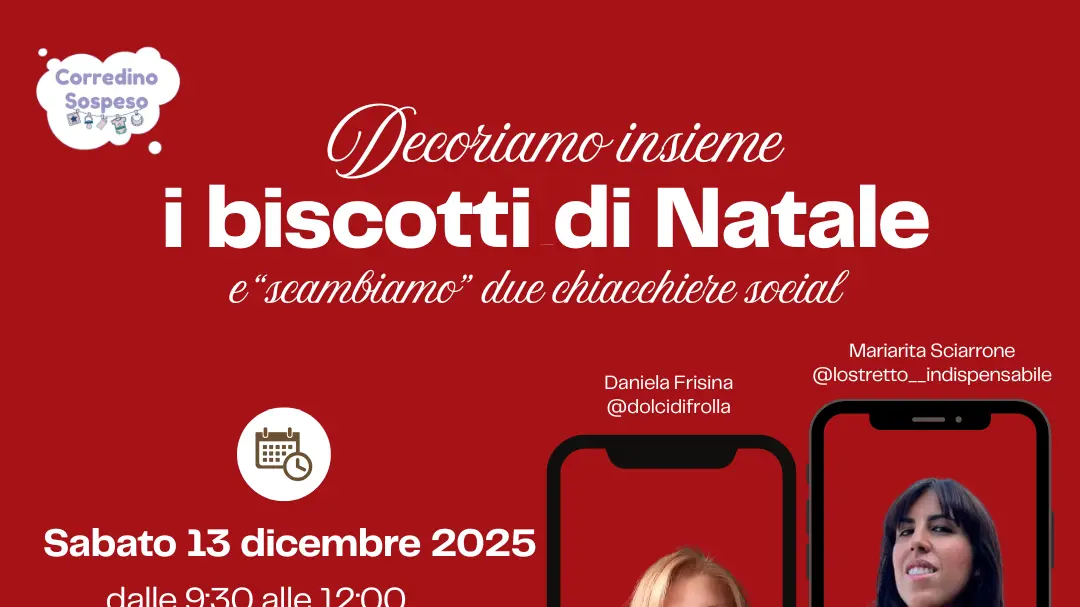 Durante la mattinata, Daniela Frisina si dedicherà alla decorazione dei biscotti di Natale, mostrando tecniche e suggerimenti pratici in un clima conviviale. Parallelamente, Mariarita Sciarrone risponderà a domande e curiosità legate al mondo dei social: cosa scrivere, come comunicare in modo efficace e come curare, con semplicità, immagini e testi.