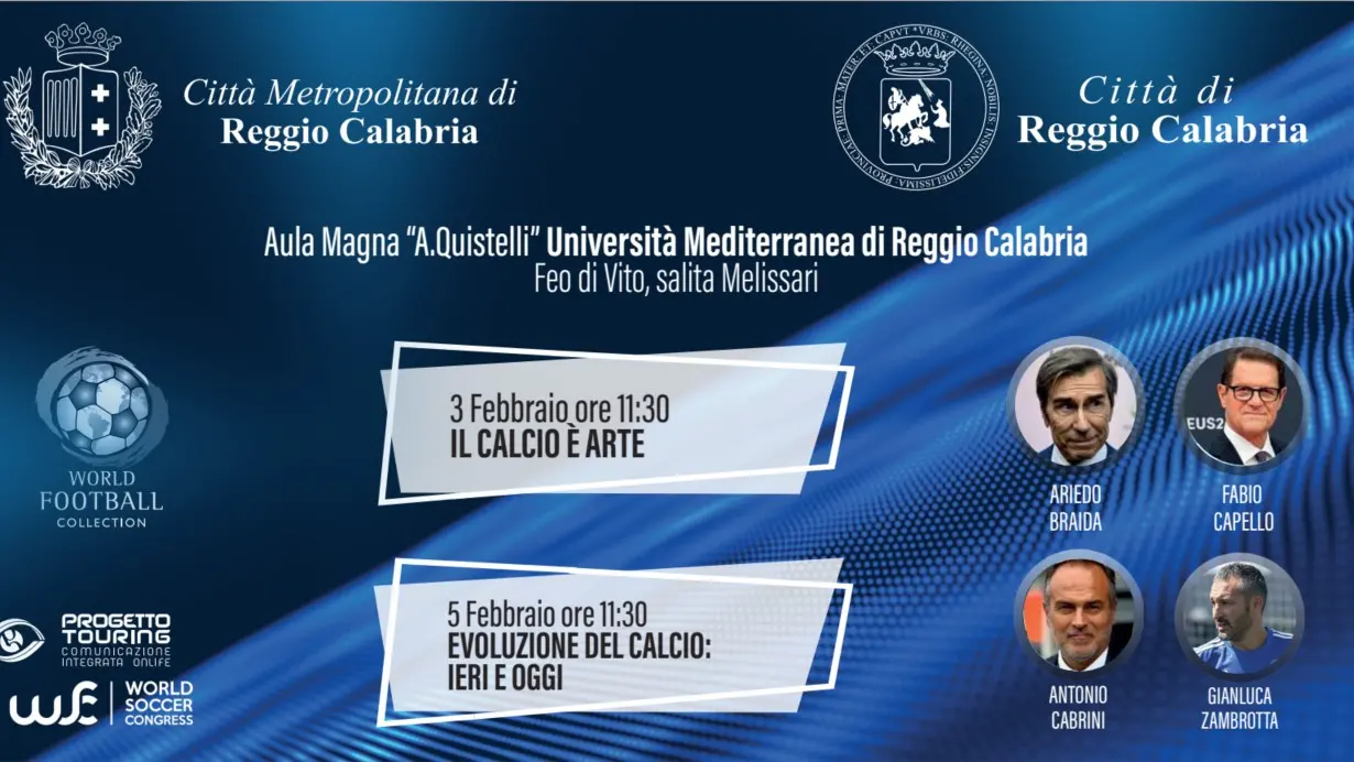 Lunedì 3 febbraio, alle ore 11:30, si terrà la conferenza ‘Il Calcio è Arte’, un incontro che esplorerà la dimensione estetica, strategica e culturale dello sport più amato al mondo. A discutere del tema, dopo i saluti del sindaco Giuseppe Falcomatà, saranno due figure iconiche del calcio internazionale: Fabio Capello, allenatore di fama mondiale e profondo conoscitore del gioco e Ariedo Braida, dirigente sportivo tra i più influenti del panorama calcistico. La moderazione dell’incontro sarà affidata a Marco Russo, giornalista di DAZN.
