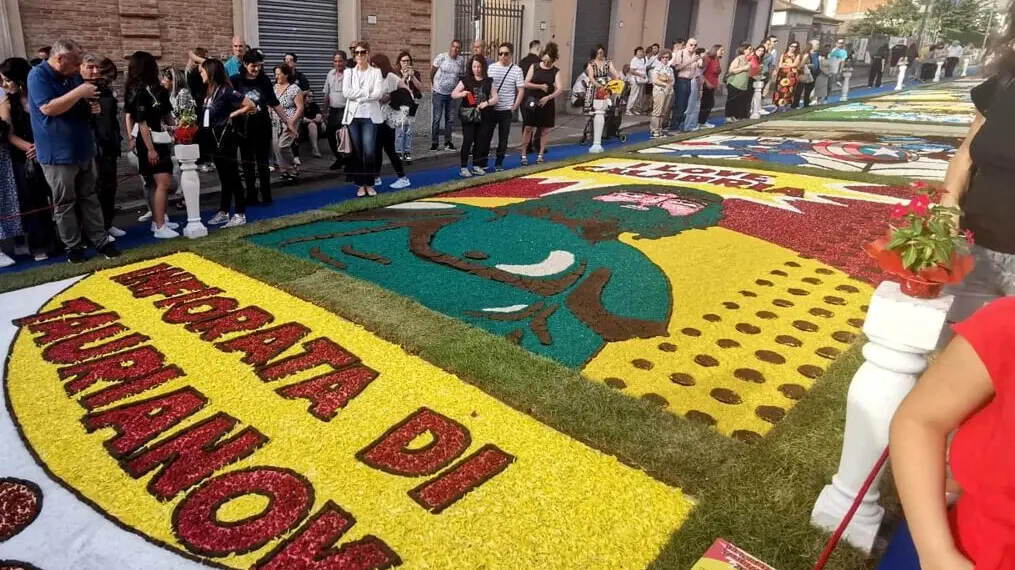 «Grazie alla competenza nella logistica maturata da Domenico Albanese – ha dichiarato Stranges – quest’anno possiamo massimizzare gli spazi dedicati con 20 bozzetti di 6.50×4.50 per 585 mq, con circa 130.000 fiori 3.500.000 di petali. Quest’anno avviamo un percorso internazionale che vedrà aprirci nei prossimi anni ad altre associazioni estere e lo facciamo scegliendo un tema che è coerente con la missione sociale storica che gli infioratori di tutto il mondo hanno, esaltare cioè l’unione fra i popoli, l’amicizia fra le persone e la condivisione di valori sani».