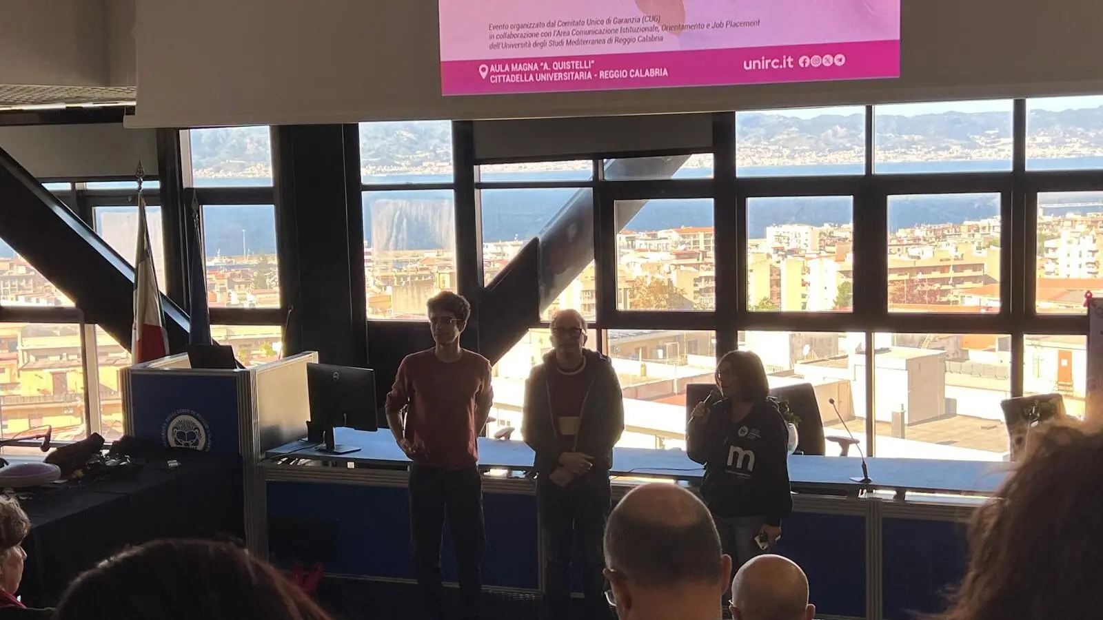 In occasione dell’evento organizzato dall’Università degli Studi Mediterranea di Reggio Calabria e dal CUGUNIRC (Comitato Unico di Garanzia), dal titolo «Dagli stereotipi alla violenza di genere: riflessioni tra parole e suoni», il 27 novembre la classe 5ª AS del Liceo “Alvaro” di Palmi è stata invitata a partecipare all’incontro presso l’Aula Magna Quistelli e a presentare il cortometraggio «Tornerò uomo», realizzato nell’ambito del progetto S.M.A.R.T. durante l’a.s. 2023-2024.
