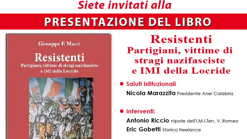 Il pomeriggio, in collaborazione con il B&B Stellaris e l’associazione “Blu Sbarre”, in occasione dell’80°anniversario della Liberazione dal fascismo, verrà presentato il libro di Giuseppe Francesco Macrì “Resistenti – Partigiani, vittime delle stragi nazifasciste e IMI della Locride”.