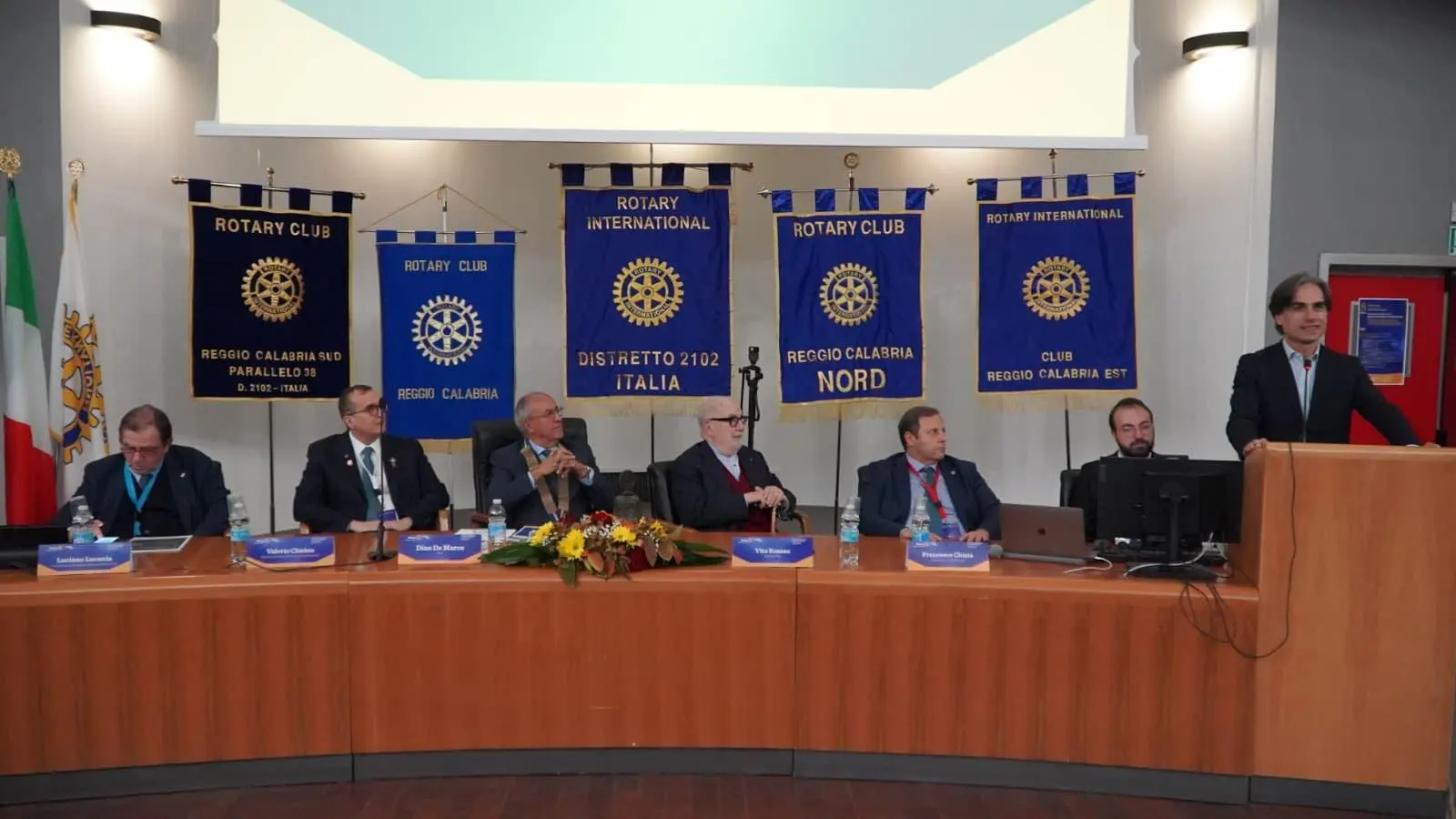 «La mia presenza qui non è solo frutto di un' adesione ad un impegno istituzionale, ma è una partecipazione accompagnata da grande affetto, perché sono tanti i ricordi personali e le emozioni che mi legano alla famiglia rotariana» - sono queste le parole del Sindaco Giuseppe Falcomatà che, nel suo indirizzo di saluto, ha definito l’impegno del Rotary «un punto di riferimento per la nostra città, in grado di promuovere ed organizzare approfondimenti su tematiche di sviluppo sociale ed eventi declinati al futuro».