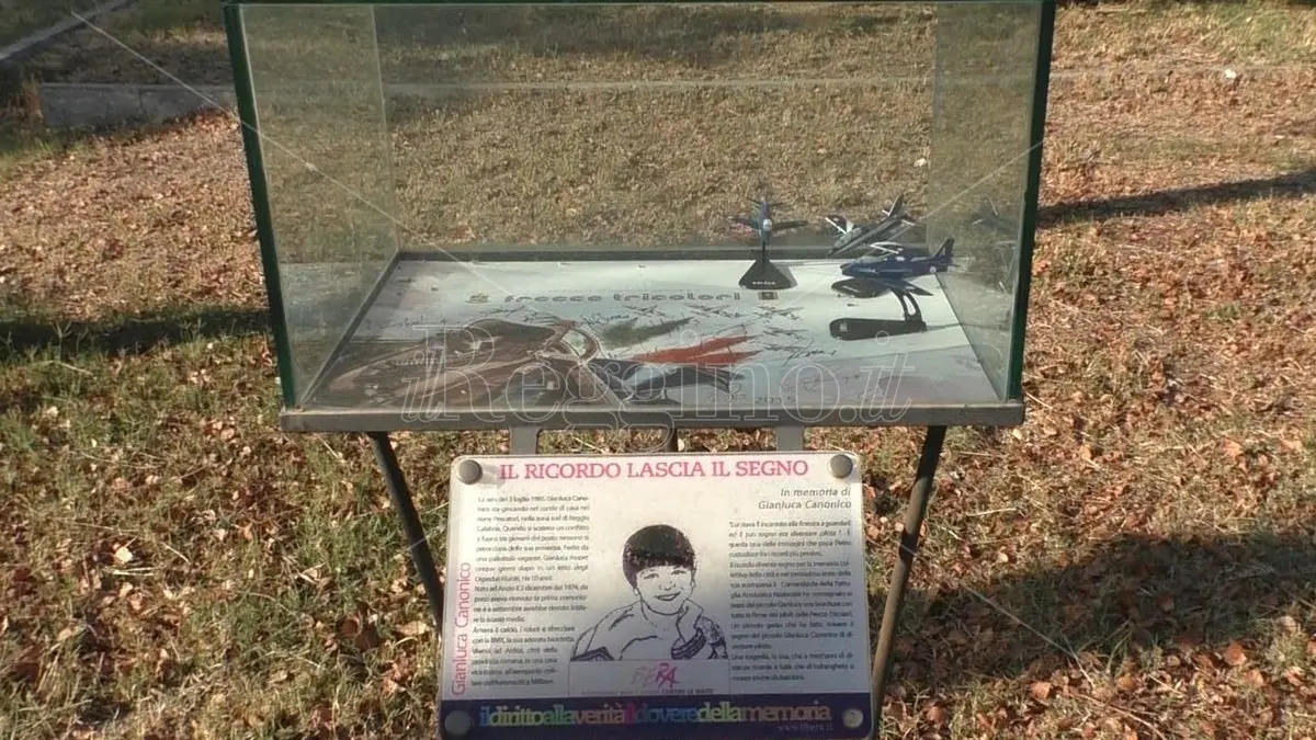 Fu posta una teca in piazza Castello in cui è ancora esposto un aereo in miniatura e la brochure con gli autografi del colonnello Ian Slangen, comandante della Pattuglia acrobatica nazionale delle Frecce Tricolori esibitesi quello stesso anno a Reggio Calabria, e degli altri piloti. Tra questi anche Stefano Vit, quest’anno a Reggio in qualità di comandante delle Frecce Tricolori. Nel 2015, il colonnello Ian Slangen, con il maggiore Andrea Soro, aveva consegnato a papà Pietro una brochure con tutte le firme e una dedica al piccolo Gianluca in nome della sua passione per il volo.
