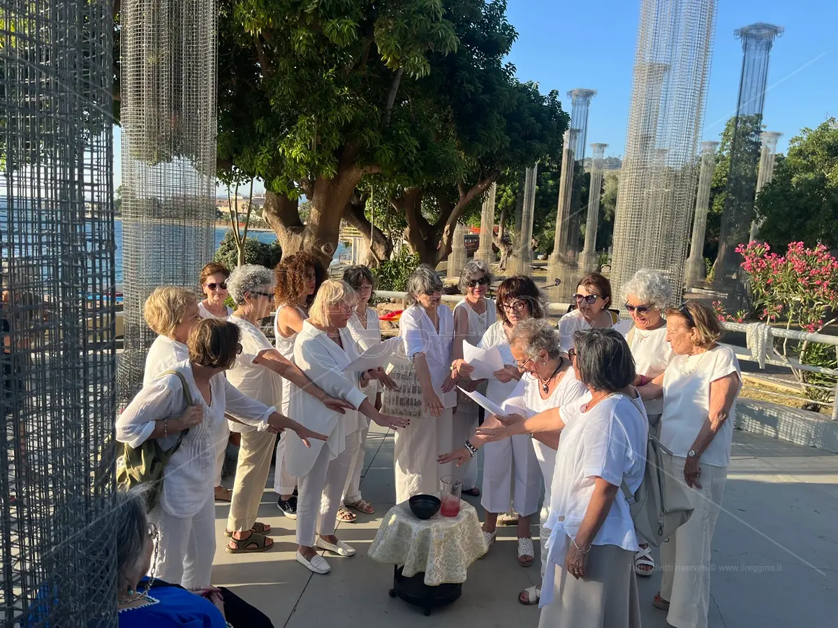 Sulle orme di Lisistrata che “scioglie gli eserciti”, l‘Unione donne in Italia trasforma la rotonda 8 marzo a Reggio Calabria in un proscenio in cui teatro greco e poesia prestano parole ad un appello accorato alla pace che culmina nel coro finale, ispirato al monito della partigiana Lidia Menapace, nome di battaglia Bruna: «Fuori la guerra dalla Storia».