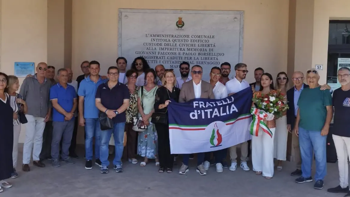 Il luogo scelto per l’omaggio, la targa commemorativa dedicata a Giovanni Falcone e Paolo Borsellino posta all’esterno del municipio, ha fatto da cornice a un momento di profonda riflessione collettiva.