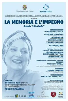 In occasione delle celebrazioni per la «Giornata mondiale contro il cancro», venerdì 6 febbraio, si rinnova l’appuntamento con la quarta edizione de «La memoria e l’impegno», manifestazione all’interno della quale, ogni anno, viene conferito il Premio dedicato alla memoria del magistrato Lilia Gaeta, istituito nel febbraio del 2023 dal Garante della Salute della Regione Calabria, Anna Maria Stanganelli, e assegnato ad esponenti della magistratura, delle forze dell’ordine, della medicina, del mondo dell’associazionismo e della società civile, che si siano distinti nel contrasto ad ogni forma di illegalità nel sistema sanitario e nel promuovere una sanità migliore, secondo i principi ispiratori della figura che lo stesso premio intende ricordare.