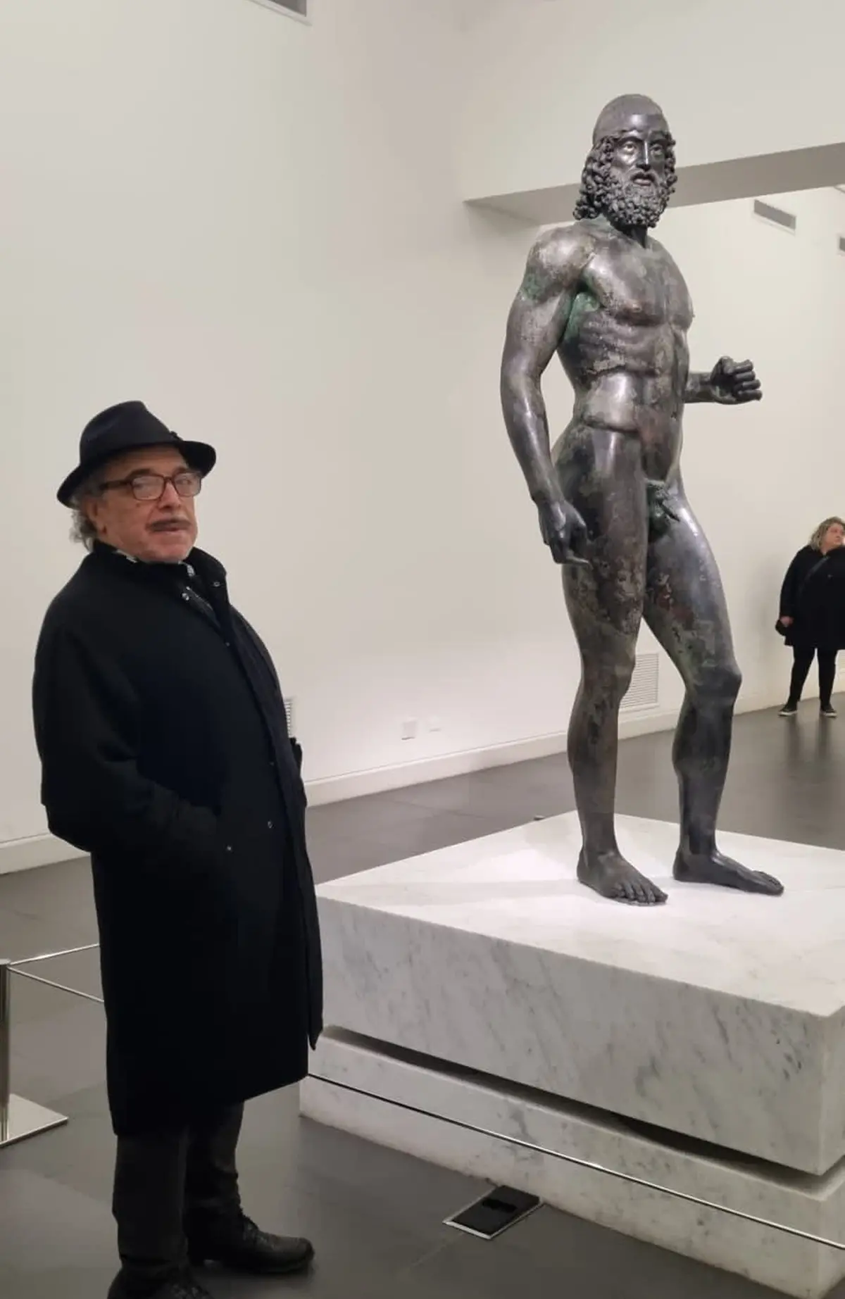 «Ieri a Reggio Calabria sono rimasto veramente illibato davanti ai Bronzi di Riace. Nella foto io sono quello col cappello», il sagace commento dell’attore, postando una foto con uno dei due guerrieri sulla sua pagina Facebook.