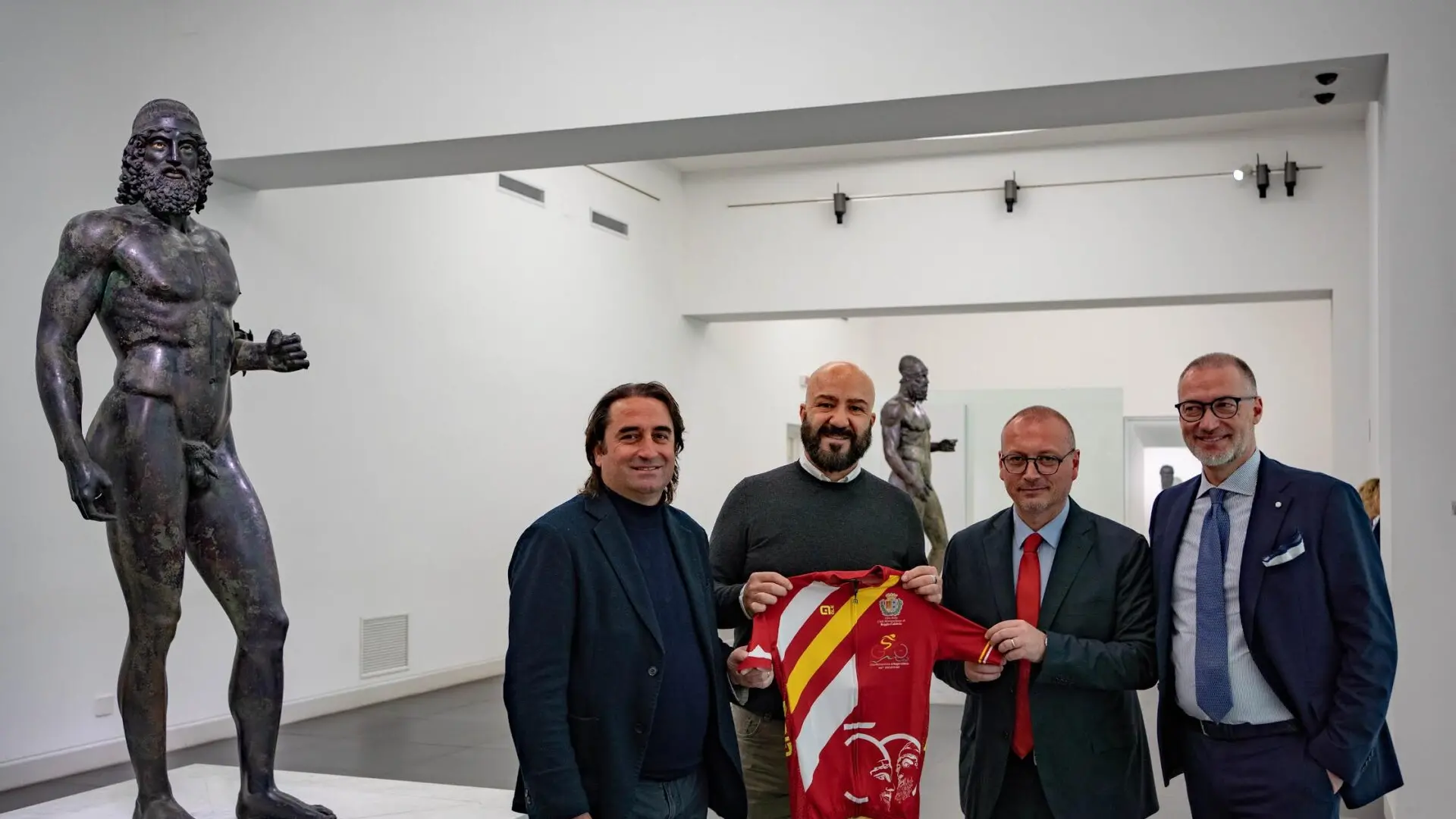 Se la gara prenderà il via nella giornata di domenica, l’anteprima delle manifestazioni legate al Giro sono già iniziate con il sindaco metropolitano facente funzioni, Carmelo Verace, ed il Consigliere delegato allo Sport, Giovanni Latella, che hanno accompagnato il Commissario Straordinario della Lega italiana Ciclismo Professionistico, Cesare Di Cintio, fra le meraviglie custodite all’interno del Museo Archeologico dove, di fronte alle statue dei Bronzi, hanno consegnato la maglia la direttore Carmelo Malacrino. Un doveroso tributo del Giro ai due guerrieri greci, cui è dedicata l’edizione che segna il ritorno della grande classica del Sud.