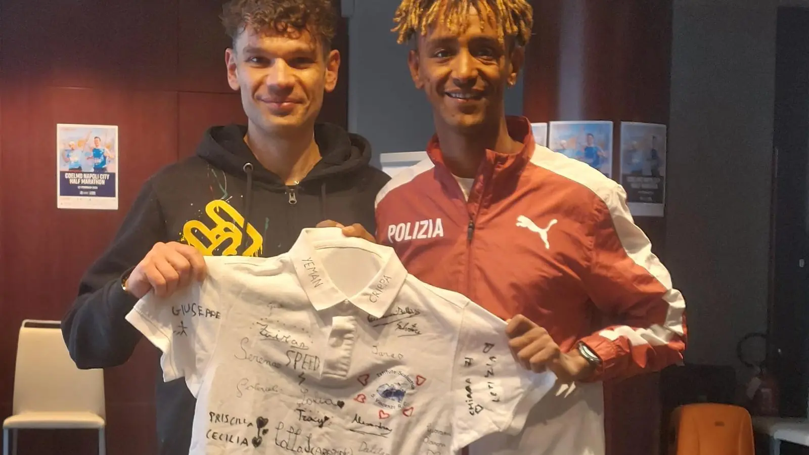 È quindi ormai una collaborazione nota a livello nazionale anche per la grande partecipazione di ragazzi e genitori, oltre che dell’intera compagine scolastica. In particolare, in occasione della Coelmo Napoli City Half Marathon, il Prof. Sudano ha incontrato l’atleta Yeman Crippa, campione della nazionale italiana di atletica leggera, detentore del primato italiano sulla distanza di mezza maratona, a cui è stata donata una maglietta dell’Istituto con le firme di tutti gli alunni (foto).