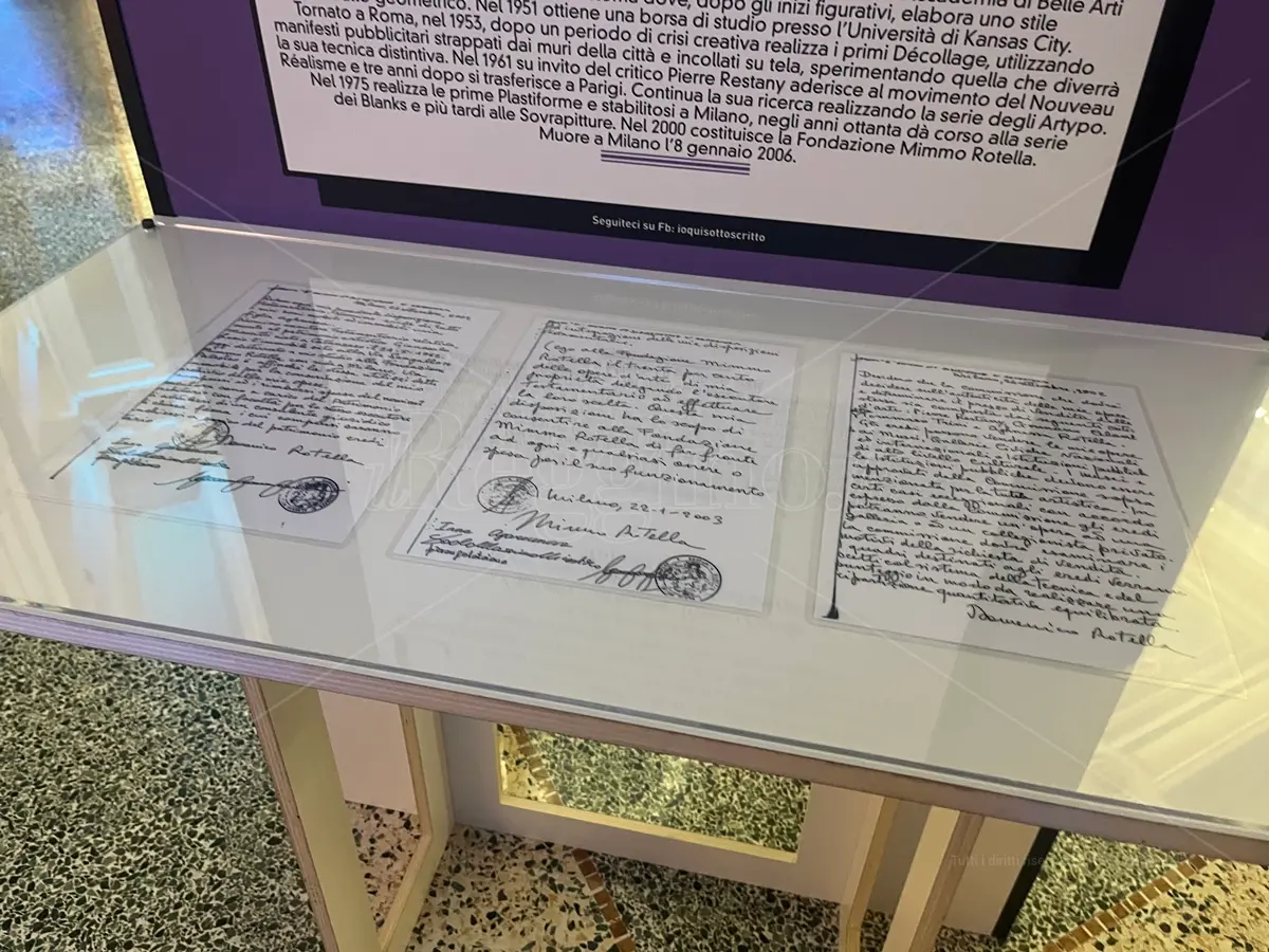 Mimmo Rotella (Catanzaro, 7 ottobre 1918 – Milano, 8 gennaio 2006), artista legato al movimento del Nouveau Réalisme e della Pop Art internazionale. Con il testamento darà vita alla sua Fondazione: “Lascio l’immobile sito alla via Sangalli 14 oggi destinato a mio studio alla Fondazione Mimmo Rotella con sede in Milano via Palestro 6 affinché la stessa utilizzi detto immobile per la conservazione del mio archivio delle mie opere. Gli eredi possono vendere le mie opere solo ai Musei, Gallerie Civiche Nazionali ed internazionali o Istituzioni pubbliche di alto livello culturale. Lego alla Fondazione Mimmo Rotella il trenta per cento delle opere d’arte di mia proprietà”.