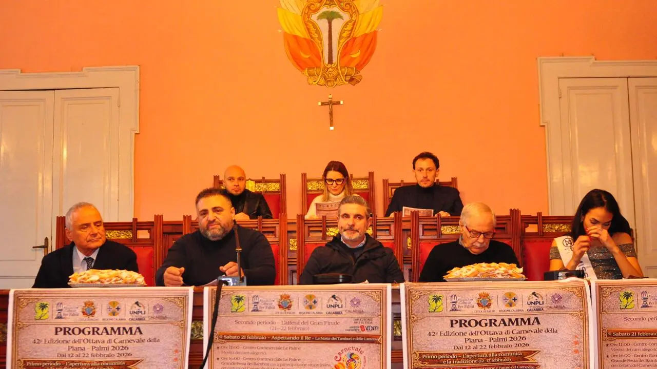 Con la cerimonia ufficiale svoltasi nella Sala Consiliare del Comune di Palmi, ha preso ufficialmente il via la 42ª Edizione dell’Ottava di Carnevale della Piana – Palmi 2026, una delle manifestazioni identitarie più importanti della Calabria.