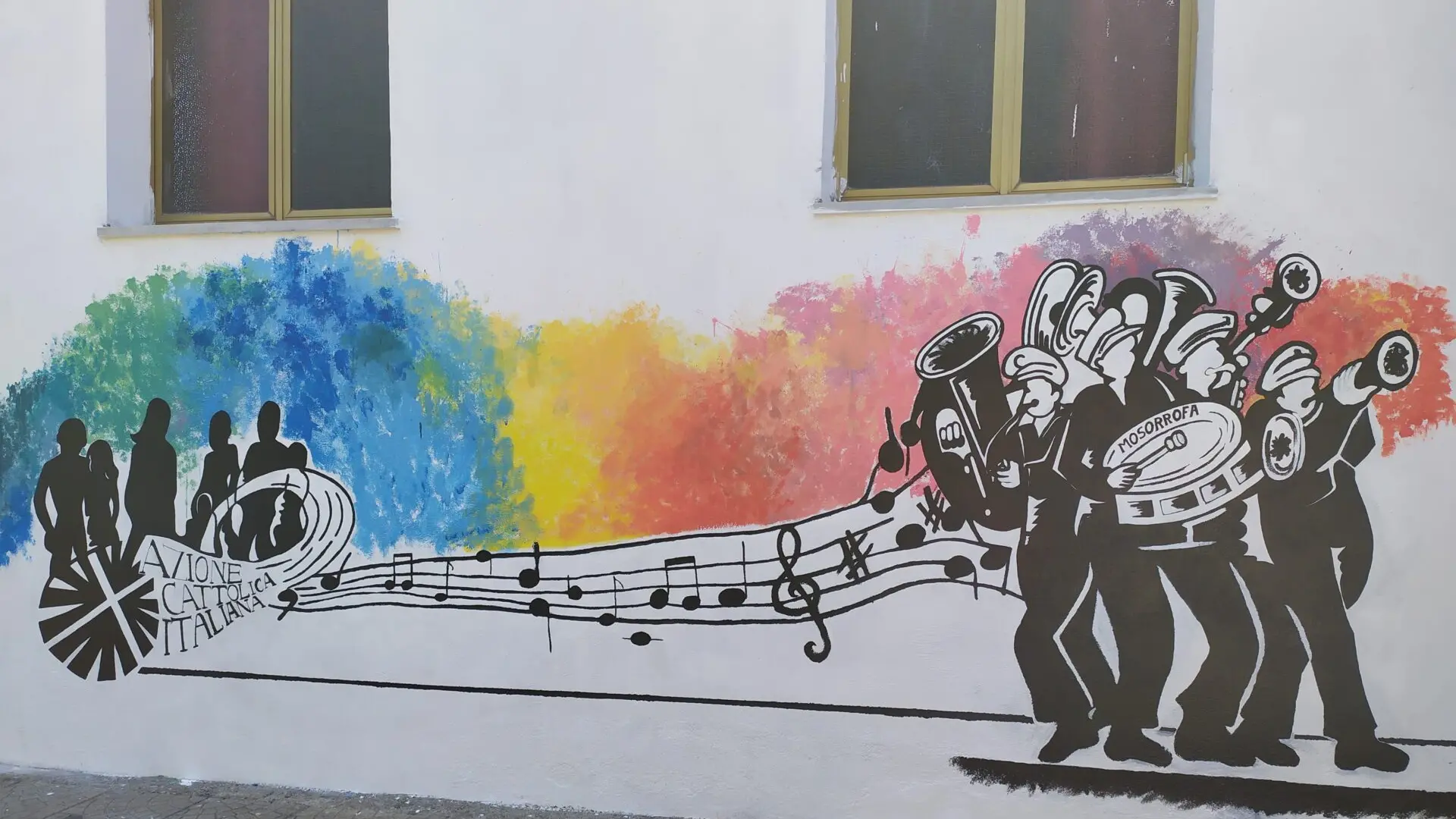 Si è voluto iniziare il percorso di abbellimento del paese da questa Sala parrocchiale intitolata al Can. Caridi perché è parte integrante della storia di Mosorrofa. Qui è sorta la prima Chiesa dedicata a San Demetrio quando tutto il paese si racchiudeva tra Strapunti e Mule. Divenuta poi Chiesa patronale dedicata alle Anime del Purgatorio è tornata ad essere la Chiesa dove si celebrava la messa parrocchiale dopo il terremoto del 1908 che ha distrutto la nuova Chiesa di San Demetrio in attesa della sua ricostruzione terminata nel 1929. Per volere del canonico Caridi è divenuta Asilo d’infanzia parrocchiale, qui sono cresciuti quasi tutti i nostri bambini. Qui è nata l’Azione Cattolica sotto il titolo di Circolo Giovanile Sant’Antonio, e qui è la sede della Banda Musicale da più di cent’anni, e da qui hanno mosso i primi passi molti musicisti mosorrofani che hanno dato lustro a quest’arte, tra cui anche un direttore del Conservatorio Cilea di RC, Sorgonà Antonino. Sempre qui, l’Azione Cattolica dopo l’ennesima ristrutturazione e la costruzione di una sala teatro ha fatto crescere tanti bambini nell’ACR e tanti giovani col teatro. Nell’ultima ristrutturazione 1998 è stata dedicata al can. Caridi come si può leggere nell’iscrizione in alto. Oggi una nuova tappa, l’abbellimento con i murales, speriamo che sia foriero di tanti benefici per il paese al pari di tutta la sua storia passata.