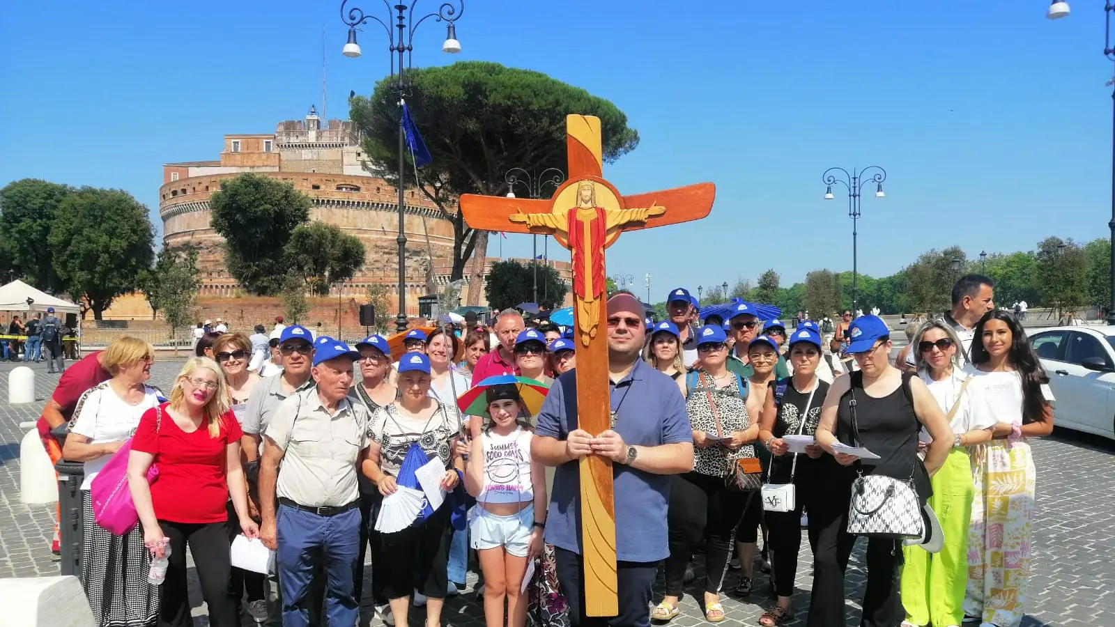 Nel pomeriggio, in uno dei momenti più forti del pellegrinaggio, i partecipanti hanno preso parte a una processione penitenziale con la croce fino a Piazza San Pietro, attraversando le vie di Roma in preghiera, guidati sempre da Don Sofrà. Un gesto vissuto con profondità spirituale, nel segno della speranza e del rinnovamento proposto dal Giubileo.
