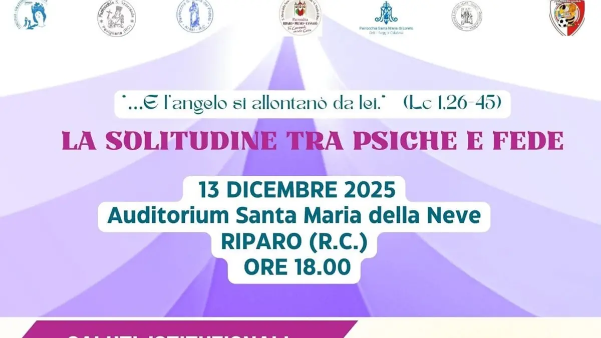 Sabato 13 dicembre, alle ore 18, l’auditorium Santa Maria della Neve in Riparo (Reggio Calabria) ospiterà l’incontro “La solitudine tra psiche e fede”, un appuntamento pensato come spazio di riflessione, dialogo e crescita comunitaria. L’iniziativa intende offrire una lettura ampia e multidisciplinare della solitudine, mettendo in relazione parola di fede, analisi sociologica, sguardo psicologico e testimonianze dal vissuto quotidiano.
