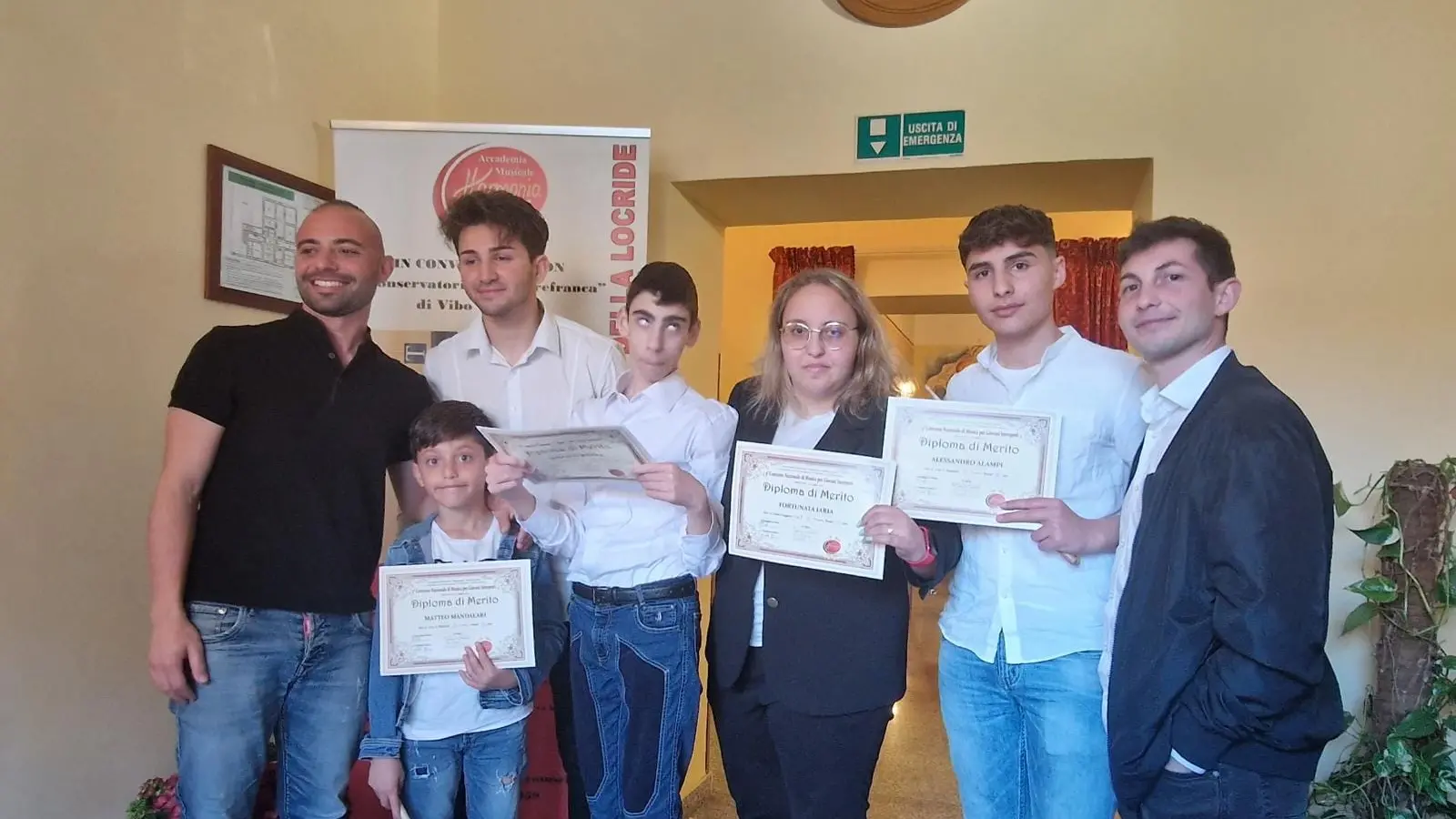 di Silvio Cacciatore – Continuano a farsi valere i giovani talenti dell’Area Grecanica. È stato un grande successo il 5° concorso musicale per giovani interpreti organizzato dall’Accademia di musica Harmonia della Locride. Tenutosi a Siderno sabato 27 maggio, il concorso ha visto trionfare i giovani della Nuova Sinfonia Academy di Condofuri del M°Tonino Nucera in ben 5 importanti posizioni. Nella classe di canto seguita dalla maestra Carmela Verduci e nella classe di batteria seguita dal maestro Sebastiano Modaffari, si possono festeggiare il 1° premio assoluto e menzione d’onore nella categoria canto a Daniele Curatola; il 1° premio nella classe di batteria ad Alessandro Alampi; il 2° premio batteria Matteo Mandalari; i 2° premio Fortunata Iaria e Francesco Tripodi, entrambi solisti nella categoria canto.