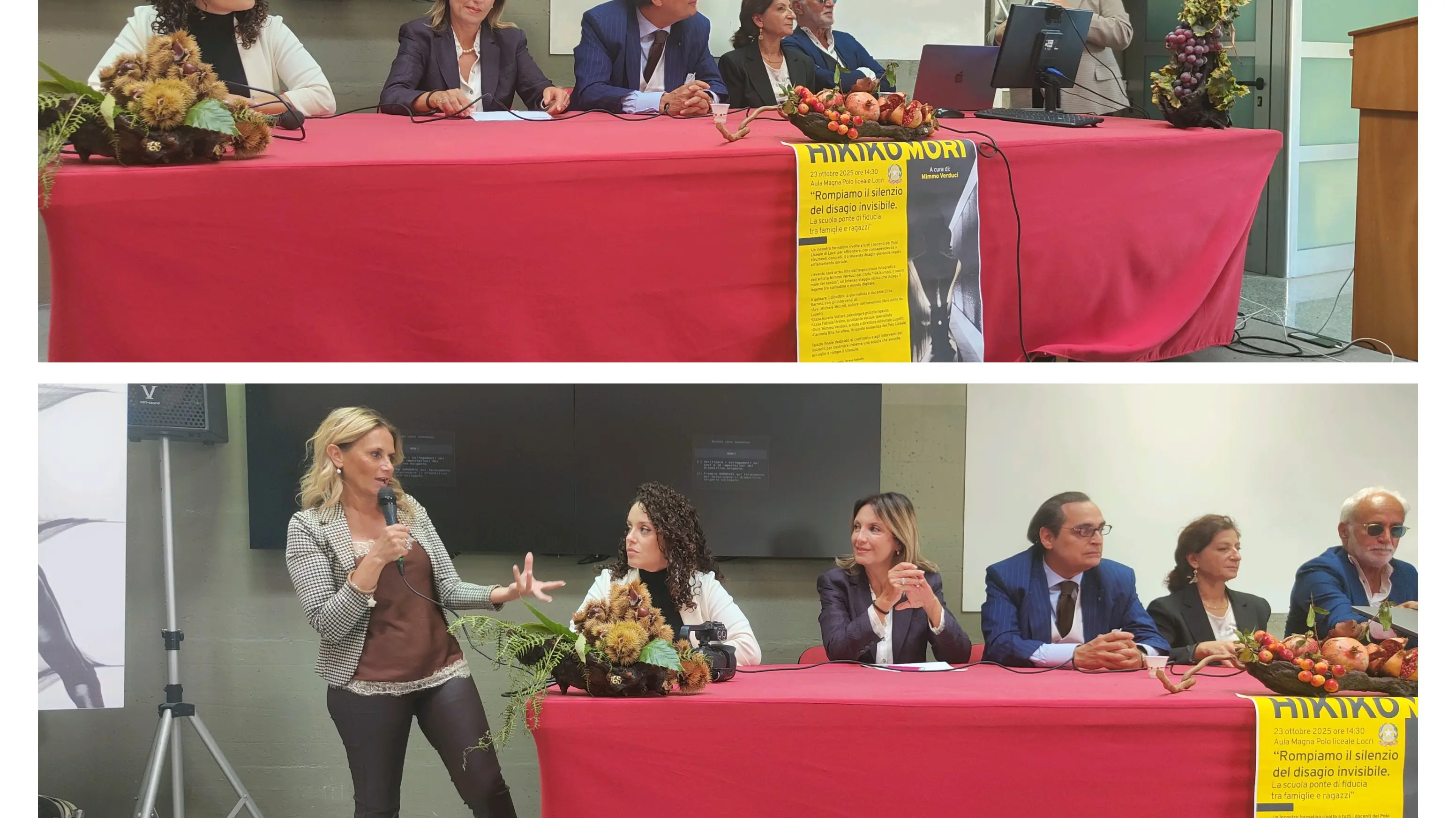 Al tavolo dei relatori l’avvocato Michele Miccoli, professore universitario, cassazionista e autore del libro “Hikikomori, il nuovo male del secolo” (Lupetti Editore); la dottoressa Aurelia Vottari, psicologa e responsabile del Consultorio di Bianco; la dottoressa Fabiola Ursino, assistente sociale specialista; e il dottor Mimmo Verduci, curatore dell’evento e autore della mostra fotografica “Oltre lo sguardo”, visitabile nell’Aula Magna fino al 31 ottobre. A moderare l’incontro la professoressa Elisa Barresi, con il sostegno di Teresa Sainato, promotrice dell’iniziativa.