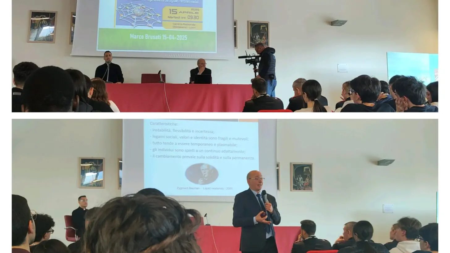 Al centro dell’intervento del prof. Brusati le sfide e le trasformazioni del mondo digitale e dei media, che oramai occupano la quotidianità delle nuove generazioni. Inoltre, ha messo in evidenza come gli smartphone, i social e l’iperconnessione guidino la volontà decisionale dei giovani, sfociando in comportamenti fragili e superficiali. Ci sono, però, ha aggiunto Brusati, dei risvolti positivi delle rete, se, ovviamente, si sa cercare, come ampliare la propria conoscenza su problematiche reali, ma anche su tematiche culturali.