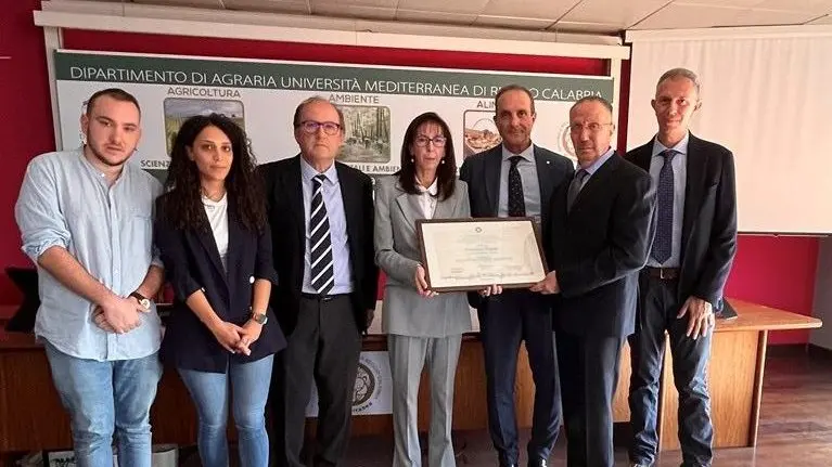 Alla Cerimonia di consegna del titolo alla Famiglia hanno preso parte anche il Direttore del Dipartimento di Agraria Prof. Giovanni Enrico Agosteo, il Coordinatore del Corso di Studio in Scienze e Tecnologie Alimentari, Prof. Antonio Mincione, e una rappresentanza delle Associazioni Studentesche della Mediterranea.