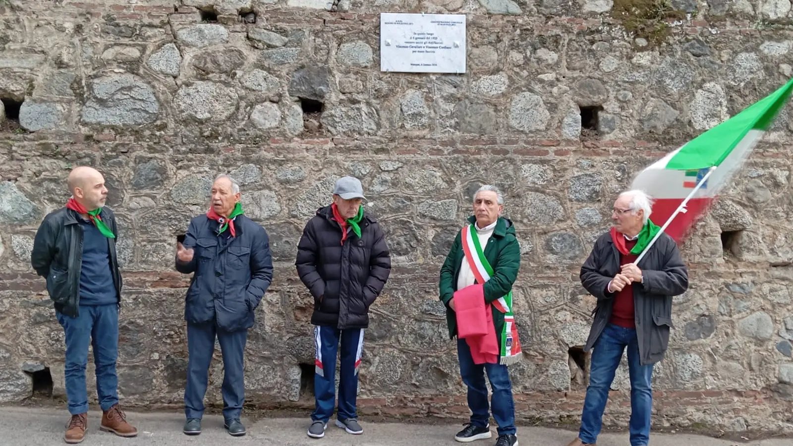 Il corteo si è poi spostato davanti al Municipio, dove è stato deposto un mazzo di fiori sotto la targa commemorativa affissa sulla facciata principale.