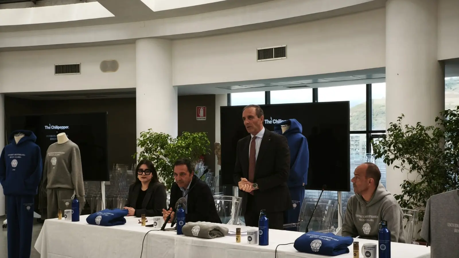 Stefano Nava, rappresentante dell’azienda di abbigliamento The Chillipepper Srl, che ha collaborato con l’università nell creazione del brand, ha spiegato come questo progetto segua il modello delle università americane, dove il merchandising rappresenta un forte elemento di identità e legame con l’Ateneo: «Abbiamo lavorato sul logo, tirando fuori la parte più importante della nostra Magna Grecia, il nostro territorio, e da lì si inizia a costruire. Oggi possiamo finalmente dare il via a questa iniziativa che, prima ancora di essere commerciale, è un progetto sociale, volto a creare comunità».