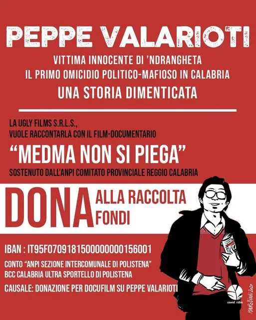 «Si tratta di un’autoproduzione. Stiamo lavorando in stretta sinergia con il territorio. Chiunque voglia sostenerci – si legge sul post su fb di Gianluca Palma di Ugly films – e contribuire a fare uscire dal dimenticatoio prima possibile questa storia, può fare una donazione. Ringraziamo per la bella locandina Giulia Fidale e, per la concessione del disegno tratto dalla copertina della riedizione de “Il caso Valarioti” (Round Robin, giugno 2020), Mauro Biani».